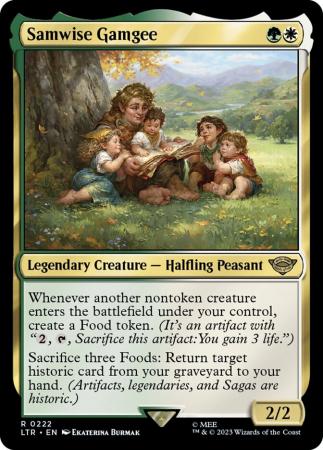 Sacrifice three Foods: Return target historic card from your graveyard to your hand. (Artifacts, legendaries, and Sagas are historic.)